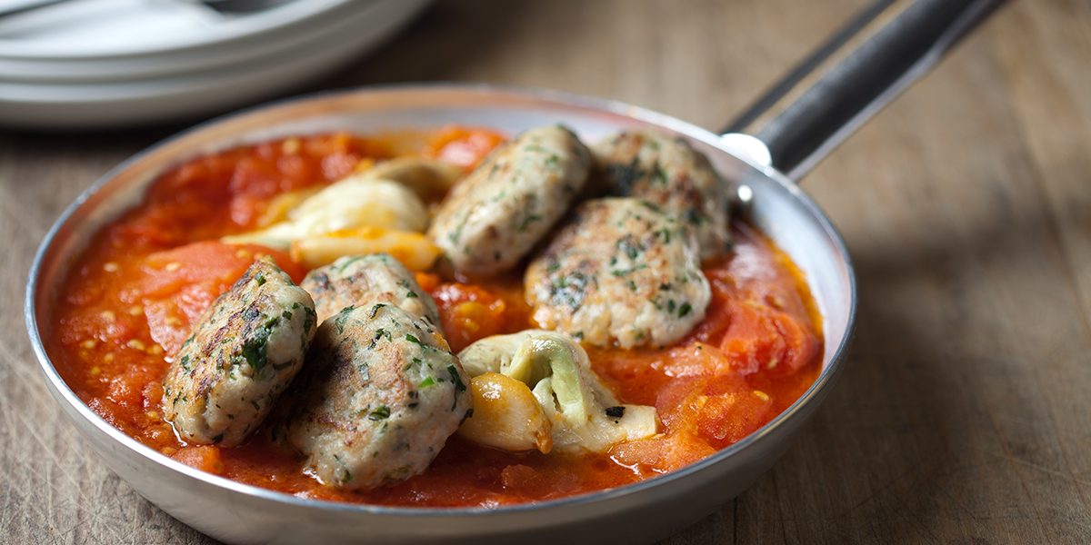 מכינים את הקציצות: מעבירים את כל המרכיבים בקערה. מטגנים קציצה קטנה, טועמים ומתקנים תיבול לפי הצורך. יוצרים קציצות עגולות ושטוחות במשקל 50 גרם כל אחת. מעבירים במקרר עד לבישול.